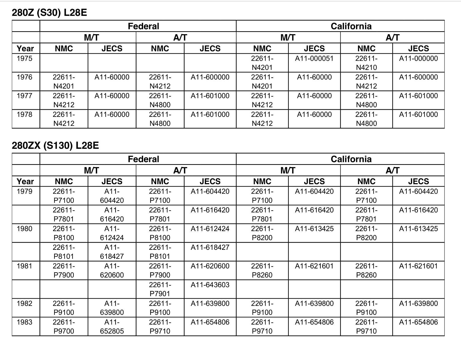 Thank you for your help and I have no doubt that you are genuine, your knowledge is excellent. I have an ECU A11-600000 with chassis number HGS130- 130... Apparently, my ECU is from an earlier model S30. (Thank you for your chart). I am not sure if that makes a big difference, but I now have a reference point. I am sure this car has not run for years and been passed on to multiple owners trying to fix the problem and each one leaving a multitude of other problems. Parts for this car all have to come from the US and that takes weeks, and the exchange rate makes everything expensive. I have a Cardone ECU 72-3112, but it is a later model with the o2 light. I have not tried it. My question is. Do I just swap out the whole system for a 260 Z manifold and carburetors to get the car on the road.
