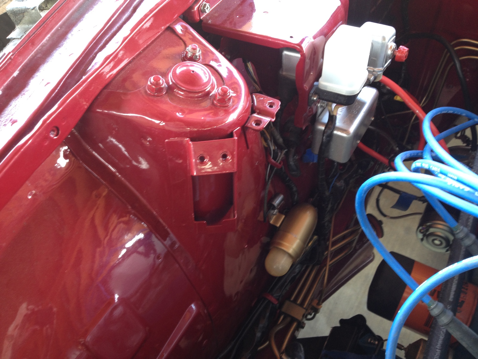Spent most of the day attending to details as I want the engine bay pretty much done before it goes to the body & paint shop for fenders, hood, doors, mirrors, inspection panels, gas door, front air dam, hatch and wing attached.