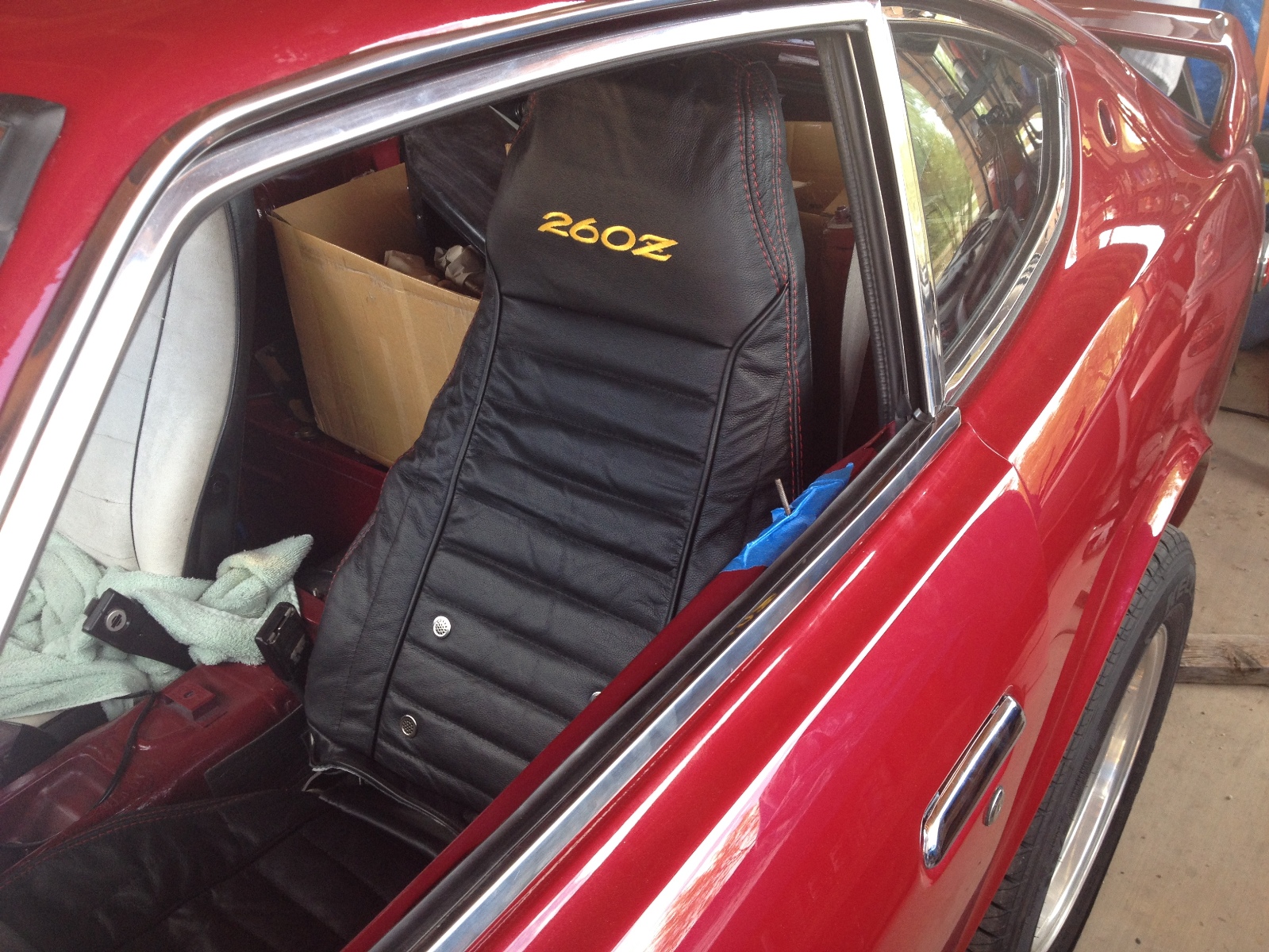 I have coming from "ridiescom" on eBay a customized set of seat covers. They are all black leather with deep red stitching and a yellow/gold 260Z logo on the headrest. Wow, I placed the order two days ago and they have already been made and shipped from .... Karachi Pakistan! As far as I know they have already made it through Germany and should be here by the end of the week. I'll post photos when they arrive.