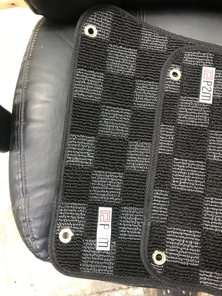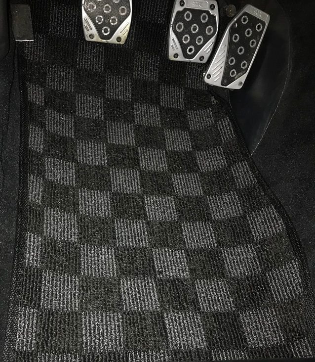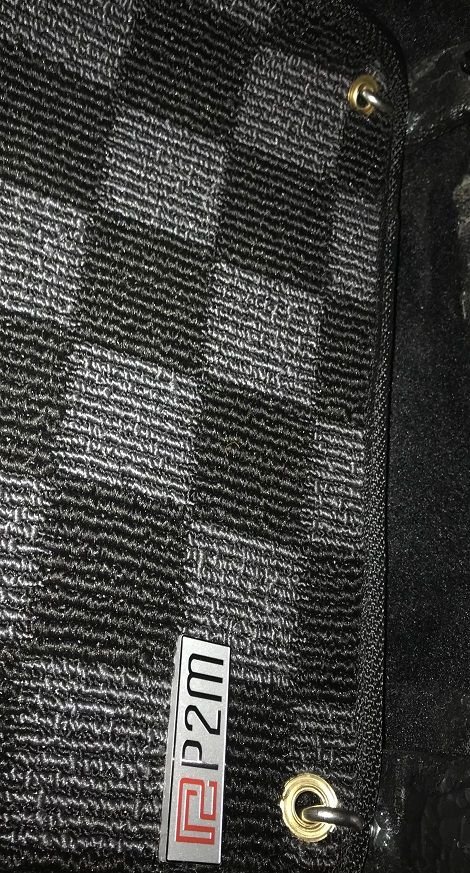 Got some floor mats finally. I dig them quiet a bit, they bring some contrast to the blackness! Added some grommets and hooks under the seat so they don't (hopefully) slide around since the mats don't come with anything to keep em in place.