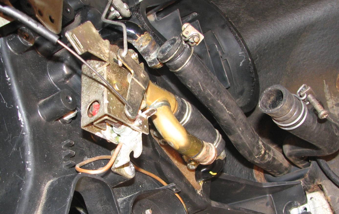 Seems the PO or the PPO removed a heater/ coolant hose, I have picks. From what I have been gathering, perhaps there was a connector there, like a 3 way splitter or some valve ? Unfortunately. short of the Cooling Circuit Chart in the FSM, I have found scant info on exactly what parts are needed to get it back working. Any picks you guys might have of how yours is setup, or comments on my pics would be greatly appreciated as always.