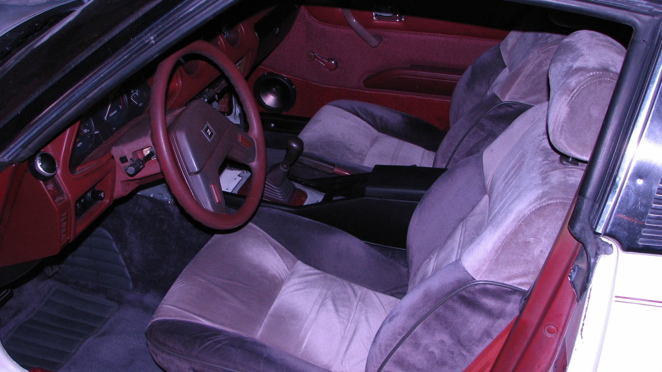 Installed the carpet and center console from an 86 300zx, for the most part I only had to do minor trimming. The holes for the seats lined right up, the placement of the hatch release was different, but worked out perfect. I still haven't got all the trim the same color yet. I had to shorten the console an inch or two, off the front end, to get it to fit under my stereo, the holes lined up almost perfect for the console too, just a bit narrower.