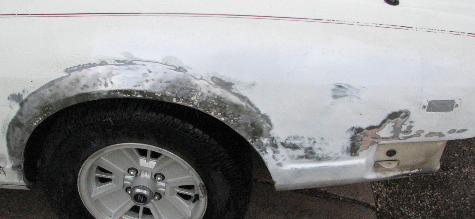 I cut out a big rust spot and hammered out a piece to fit from a scrap z31 fender, sealed it with Black RTV, then screwed it down all around and undercoated it. I also replaced the rotten seals on my tail lights, I used a rubberized foam tape, from Lowes. Between the hole in the wheel well and the tail lights leaking, I shouldn't be getting any exhaust and gas smells in the car anymore, hopefully !