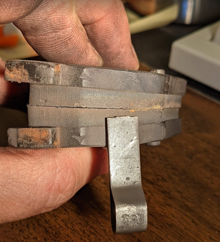 Recently pulled the pads of our '80 280zx. The car is a Lemons race car and we've done one race on these pads (PBR Metal Masters.) When I pulled the rear pads I noticed that they are wearing at a strange angle, as though the pads are not being pressed perfectly parallel to the rotor. The "bottom" edge of the pad is significantly more worn than the upper edge, perhaps by as much as an 1/8" difference in pad thickness. Given that there is just the single large piston I have a hard time understanding how this is possible. Has anybody seen this before?