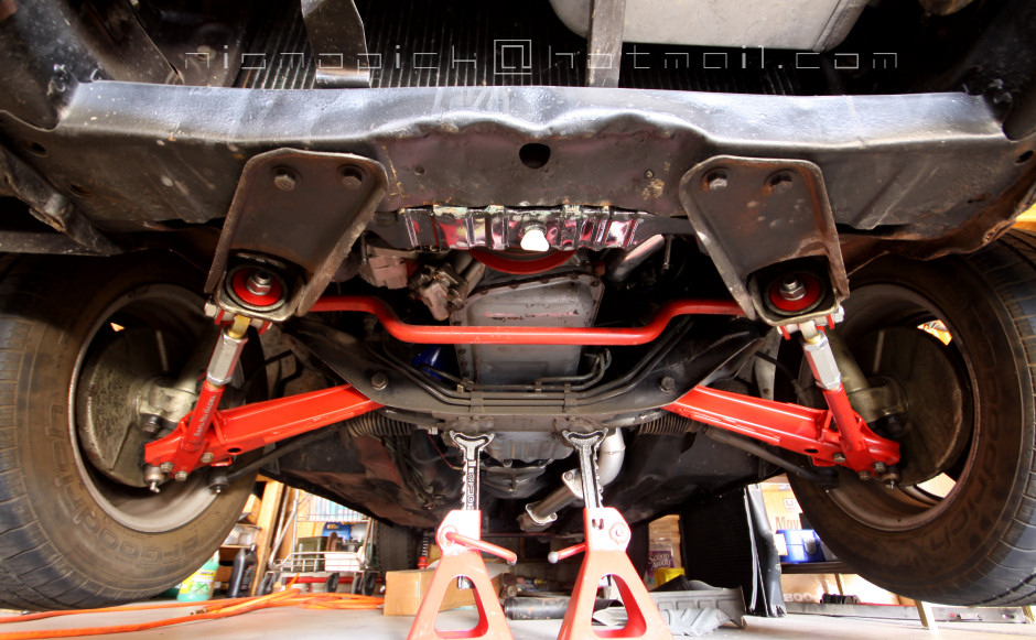 I got the control arms and T3 tension rods installed last week. One thing to note if anyone does the sway bar tab reinforcements, is that the farther out gusset cannot poke out below the bottom edge where the tension rod mounts. I had to take one off and shave it down because the tension rod would not sit flat.