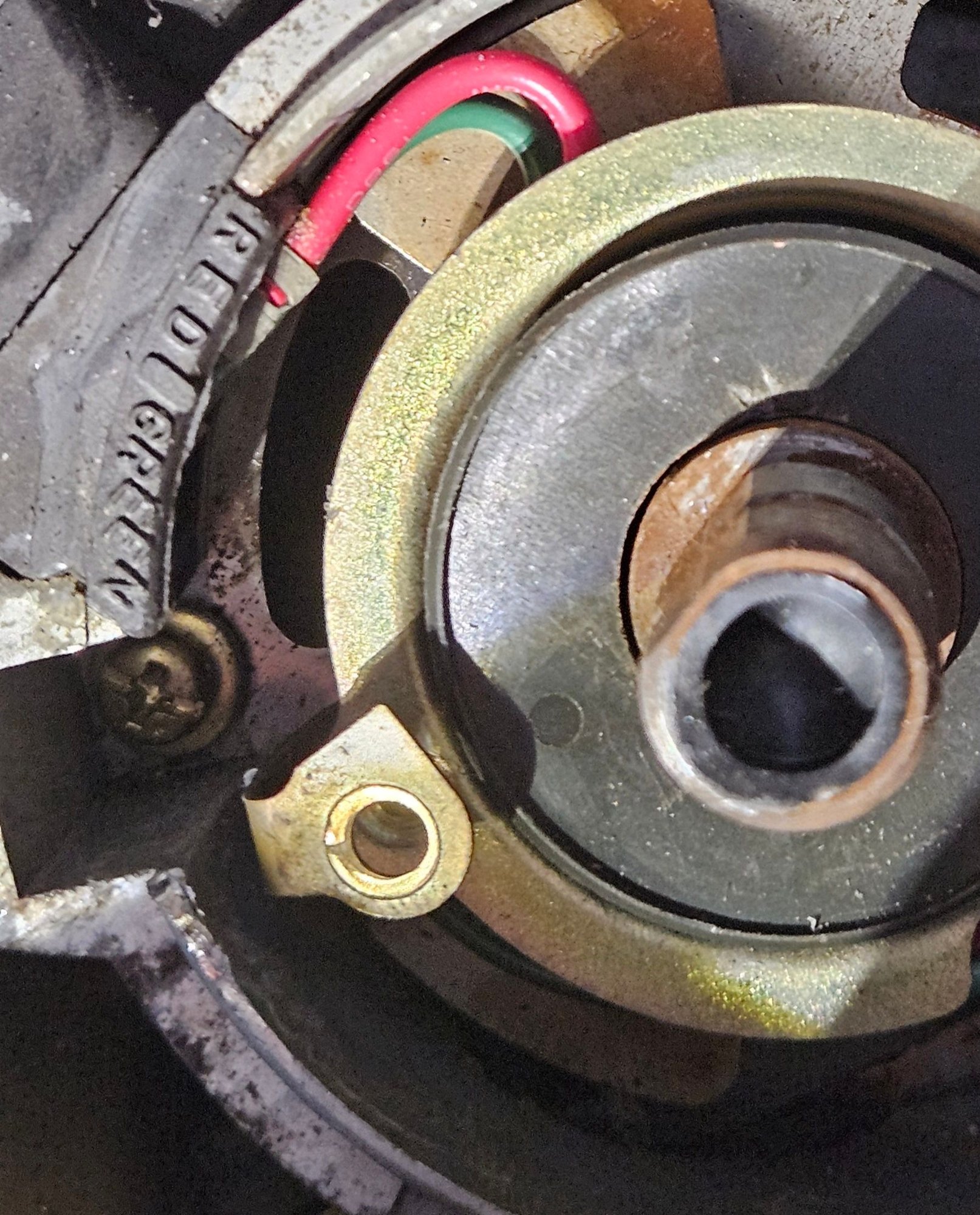 I lost the grommet that goes on the i c u that tells where the red and green leads from the pick up coil plugs into it Don't know which goes closest to the vacuum advance. The factory manual doesn't show the orientation