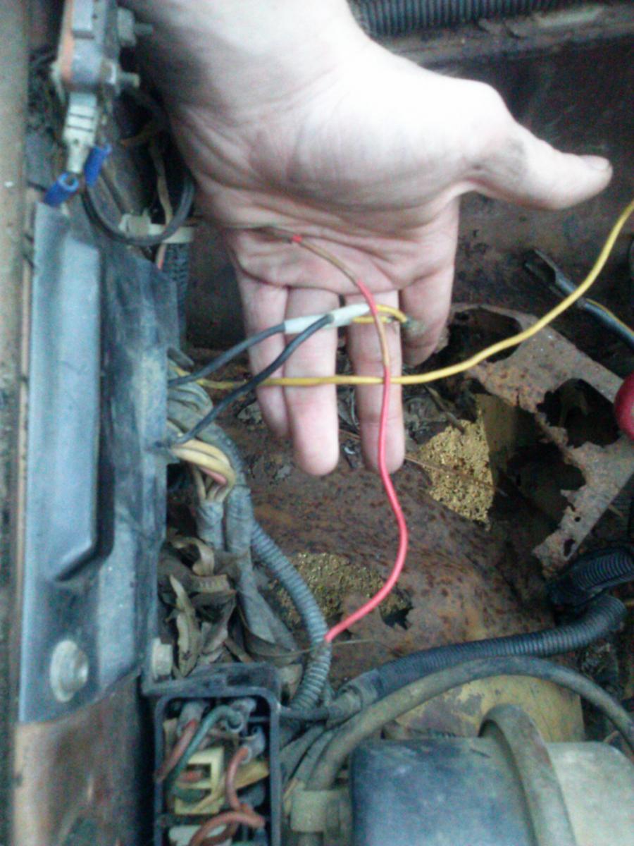 i have the fsm downloaded and the wiring diagram just confused the hell out of me the good news is thats the only spot that i cant understand on the wiring diagram the rest of the cars wires are still lookin new everything underthe dash inside is great looks mostly brand new. is there a cheap soultion to the hole what should i do for now i eventually will replace the part if i knew what it was i think its a inner fender wall right? or is it something else i wanna get this thing runnin though i dropped the gas tank today and cleaned it with about 4 bottles of ever clear and about four pounds of gravel to knock what ever was loose i googled that and someone said thats the best way and that i might wanna recondition it if it was too bad although it didnt seem to be
