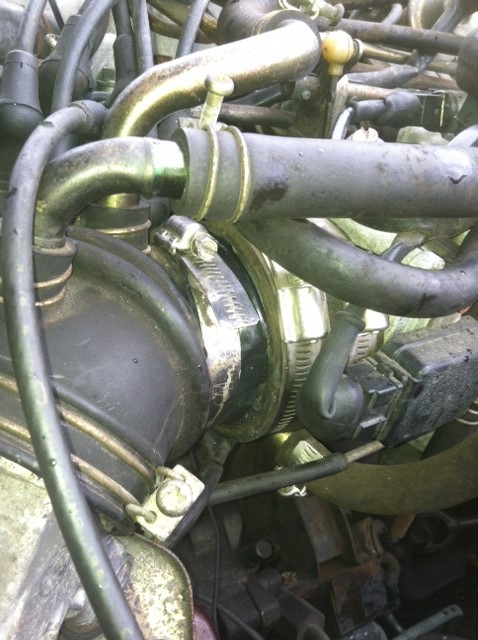 I'd agree with Zdon. The extra clamps seem to be an adapter to reduce down the intake. There's a metal reducer that's not the right size for the boot. So some one did the "make it fit" cob job. Thanks.
