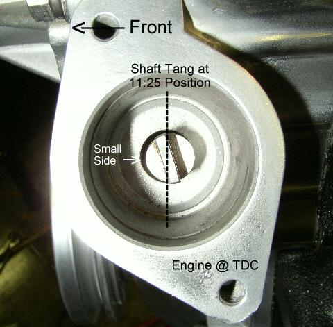 Do you have a lamp test, (little bulb that fits in the injector connection) you can rent them at autozone/autostore for free. Like I said if you don't know if the number one spark plug is getting juice on start up, you are lost (Lamp test). The distributor carries the spark to the plug (!!LAMP TEST!!) and the electric system picks up when warming up, so if your IC unit is bad(or anything electrical in the dizzy) it's not going to effect the start up. If you want to check the distributor than you need to take a look inside>(ONLY IF THERE IS NO SPARK TO THE NUMBER ONE SPARK PLUG ON START UP) Things like, the stator, reluctor, breaker plate etc. its really ez. BUT!!!!!!!!!!! This is what I would do, even know we don't even know the problem with your ride....you changed something, chained moved a tooth because??????( because if it did there was no reason to mess with the distributor and oil pump) ANywho I don't know how you found the compression stroke on the #1 cylinder, but if was going to find it I would take off the #1 spark plug and put my thumb over the hole (NOT IN THE HOLE YOU WILL LOSE THAT FINGER) and have somebody crank her over just a little(barley each time) till it pops it off with air a big burst recognizable, than set it to BTDC witch is (10 -+ 2 degrees) and install the distributor,so the tang is 11:57 on the oil pump with the small side toward the front and the rotor pointing at the line in between the green/red wording on the front of the distributor if you put the oil shaft on the way THEY want you to and if your distributor adjusting bolt/s is in the middle. hope this helps Mixon123 Let us know more HOW DID YOU GET TO THIS POINT start to finsh! |