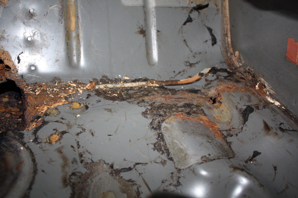 The worst of the rust. The frame rail was dented and instead of rusting the actual rail it ended up steaming the floor and rusting a small hole through. Conquest, Rust Killer primer, enamel paint and temporary patch. Mostly surface rust and the odd bubble. Also I cleaned everything with vinegar to kill any mold so any bare metal would turn to rust almost instantly. The biggest killer on the S130 was the seam sealer ironically enough. It's poreous and absorbs water once the paint cracks. Water follows the seams and they rot out. Simple fix is to remove the seam sealer BEFORE it all rots away and put in a modern urethane based seam sealer.