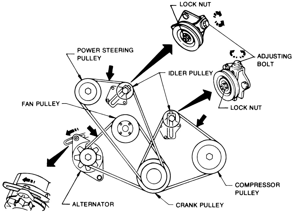 It is easy to check the deflection of the belt...get a long flat tool like a measuring stick and lay it on the longest straight run of the belt so that it is laying flat on the belt. Now take a ruler and push on the belt in the middle and measure how much it moves...1/4" should be fine on a long span on a L28. If you have a quarter inch or slightly more your belt is probably not to tight. If it doesn't move or moves like 1/32 or 1/16" then you need to loosen that belt up!!