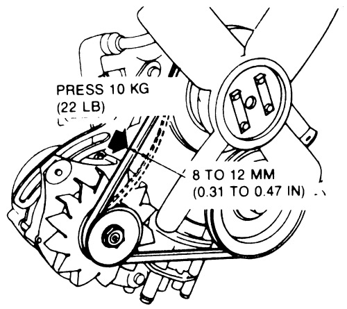 Actually Jmmorriso, it depends on the length of the belt between pulleys, the type of belt and how much force is applied to find the deflection amount. I didn't realize which belt he was talking about until I re-read the post but if you want exact figures for the Alt belt from 1970-83 is no more than .44in (1.1cm) at the middle of the longest span or accessible span with 22lbs, (10kg) or (9Nm) of force applied with the thumb. Your Welcome