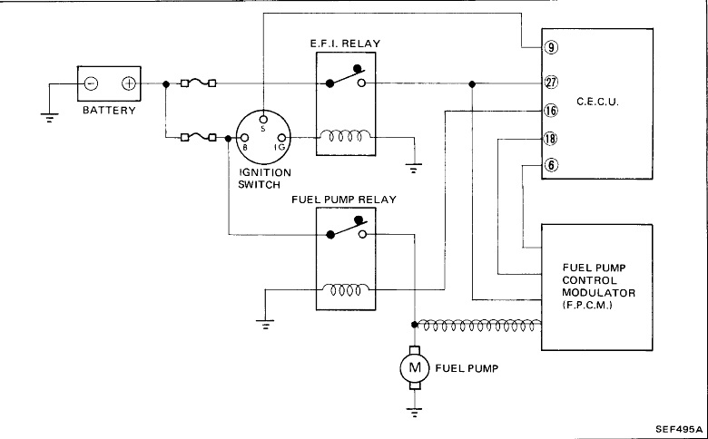 Thanks nismo, but the fuel pump modulator isn't needed in this setup. I've rewired my factory EFI relay on the '77 so that when the ECCS sends the 12v signal on pin 16, it will energize the '77 relay and direct the power to my fuel pump.