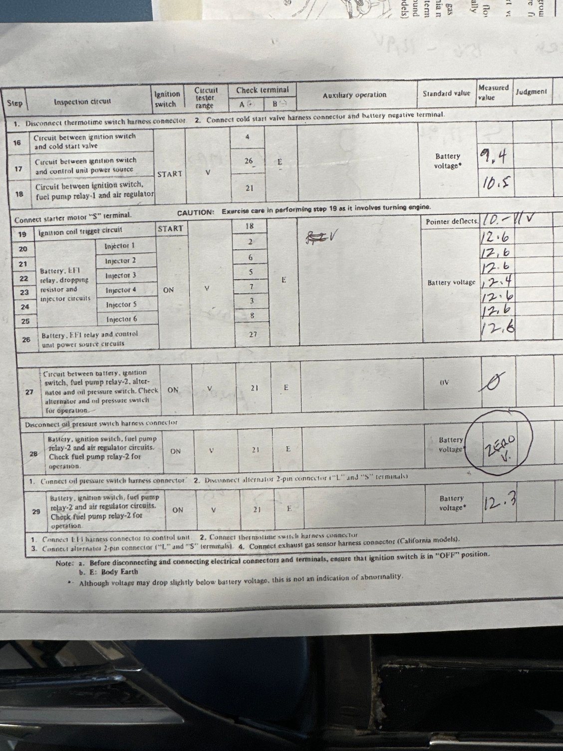 to see if any of these being unplugged would change the readings at the injector plugs while reading 12.6 volts continuously