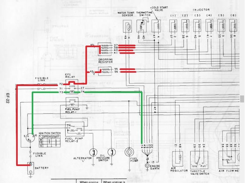 Here is the wire diagram for the power to injectors