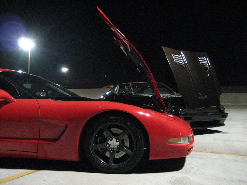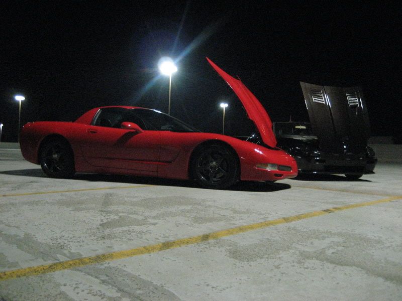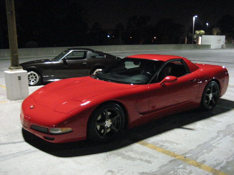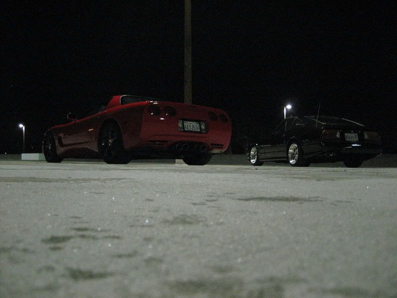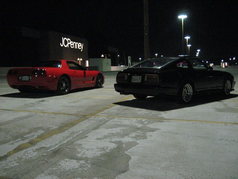 Wow Kid, verry sweet bro'. You have done excellent work on that Z, and it owns that Vette hands down. I say the main reason the Vette shows better, is because it is red. Also because the lighting is poor, and your Z is a dark color. It hides it more, kind of makes it look like a shadow Maybe next time, use more flash on your camera. You are making me envious of wanting one of my Z's to look killer like that. I think I will be working on the body more on the '83 here soon. Damn man, I am so jealous of your Z, mad props bro' and keep it up!