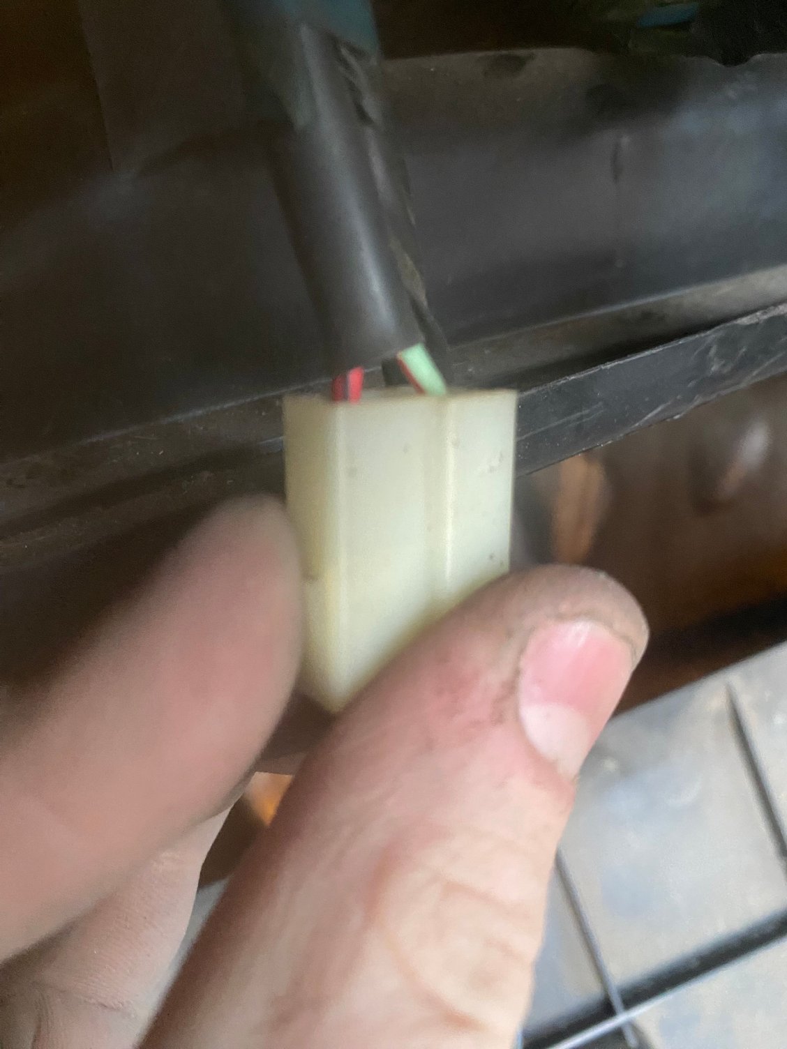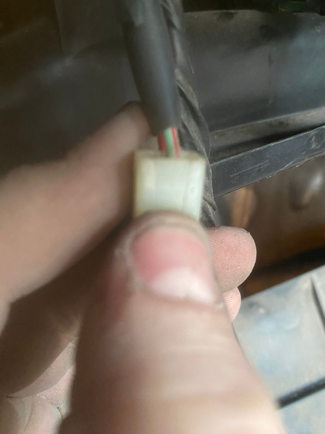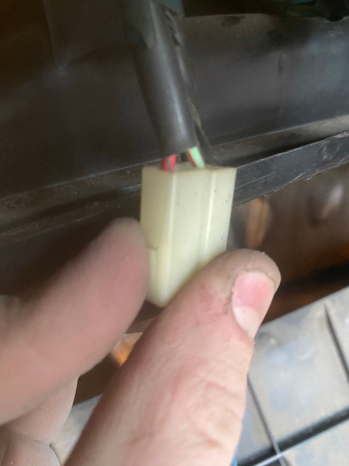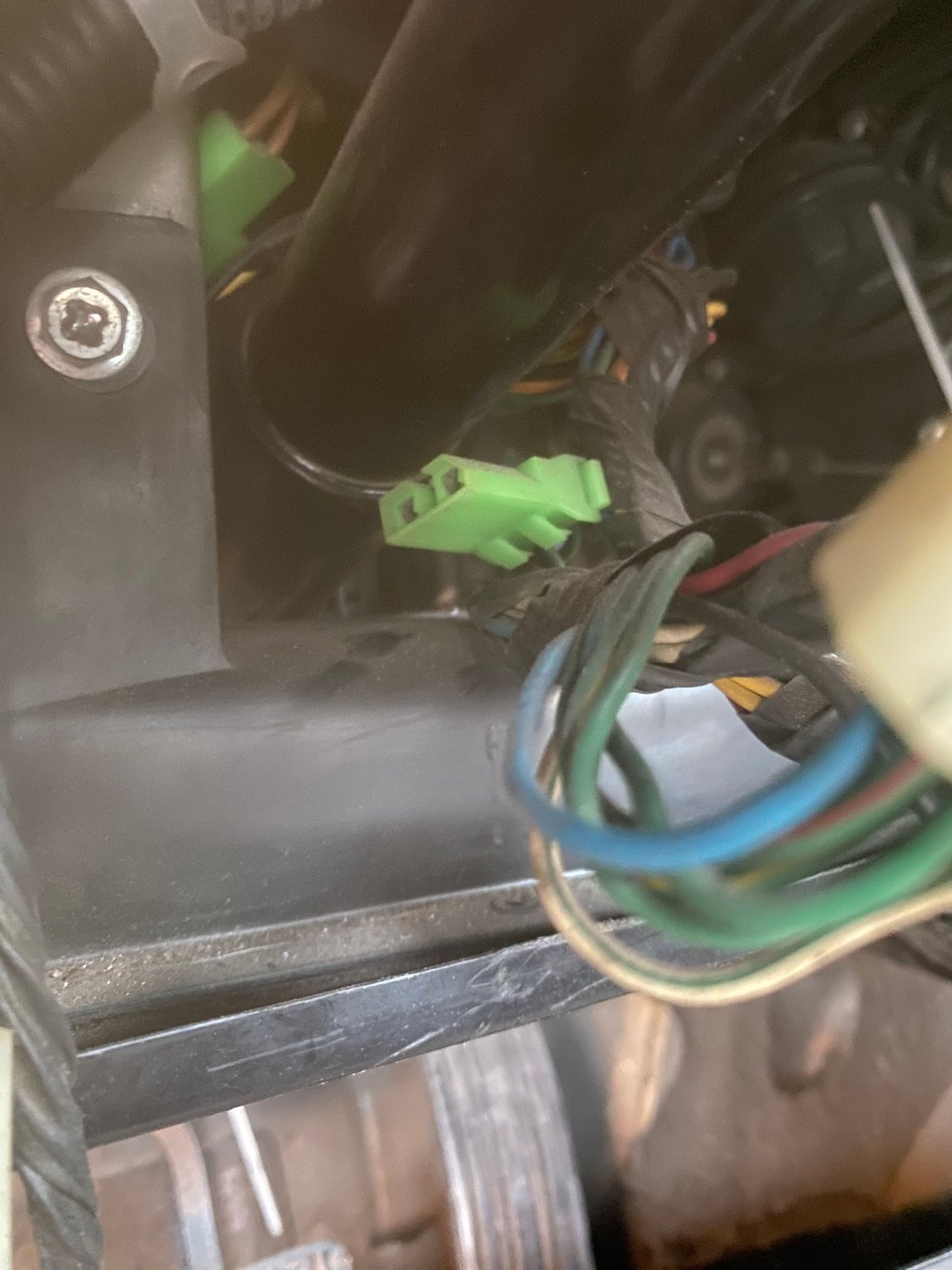 Wire colors seem to be red with black and green with red Yellow with red and pure black That green connected has too little length to get a look at the attached wires