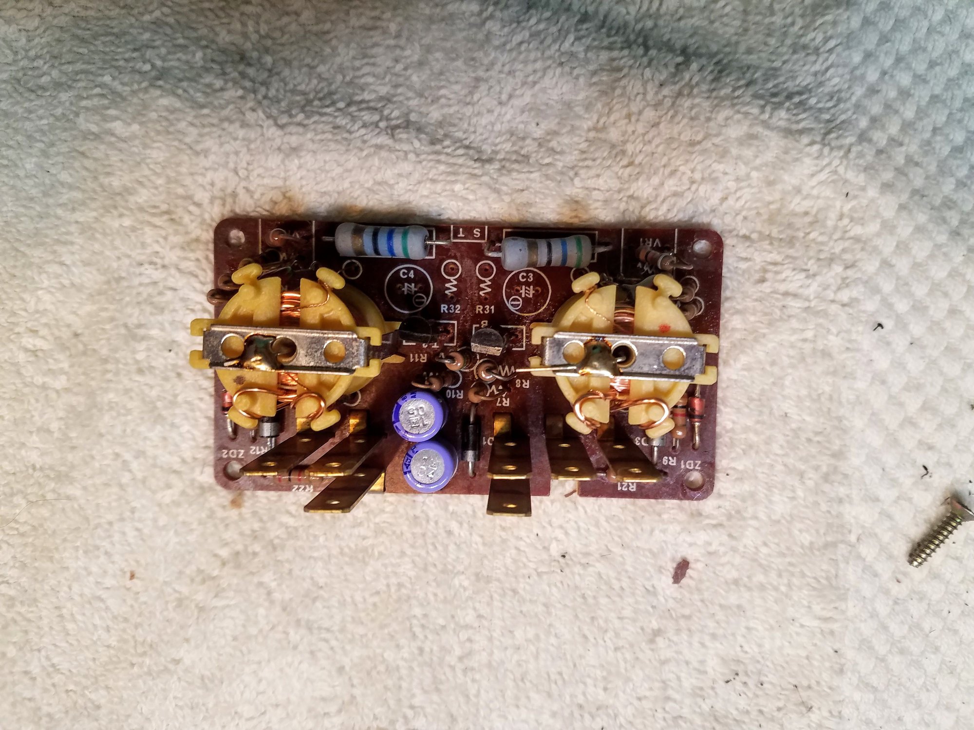 Ok under the passenger seat I have the Stop / Tail light sensor. It has a similar configuration to the head light sensor ( see https://www.zdriver.com/forums/280zx...u-280zx-30644/ ) two coils with a reed switch inside of them that close when the lights are working with incandescent bulbs. two coils from stoplight / tail light sensor