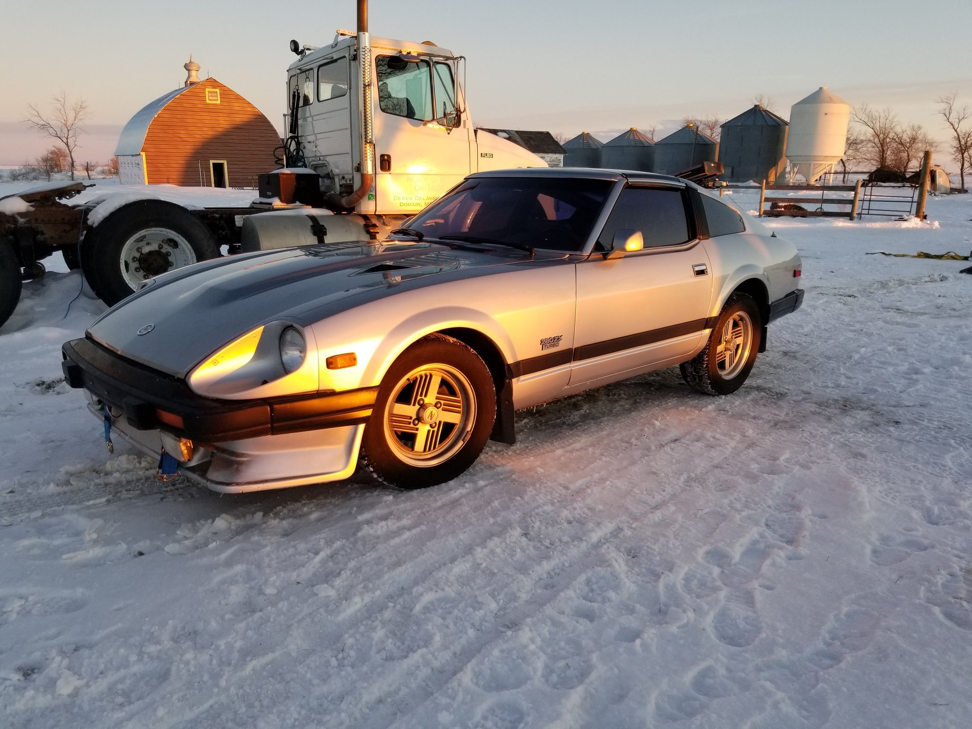 This car is a 1983, Turbo, 2-seater, 5 speed car with digital dash, auto climate control. And it has heated mirrors, rear defrost, working talking lady, headlight washers, and a mostly black interior with silver carpet. The paint itself is code 154, which I am guessing would denote the 2-tone paint as well.