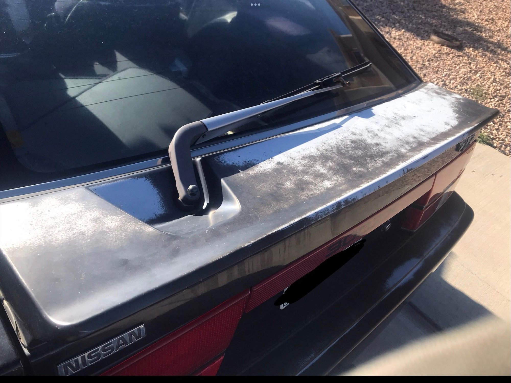 right now I’m trying to figure out to fix the sun damage on her spoiler. I think it’s the fibreglass kind—it’s not foam, and honestly feels like plastic. I’ve been told that spray point or aerosol will work, but I’m looking to make it look good and I’m not sure if those ideas are good options. I’ve tried to look up things about redyeing fibreglass but none of it was for automotive. This car means a lot to me and I’m afraid of messing her up.