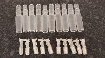 While there is a definite difference in wire that carries a digital signal (think coax cable) rather than an analog one, isn't the original goal replacing the connectors? These ceramic affairs or what ever they are made of can be found on the fuel sending unit and a whole host of connectors on my '80s era P cars (among others) and they're awful. Anyways, one possibility is to replace the female ends on the wiring harness with a bullet-style connector as pictured. Another would be to go wandering through your local junkyard.