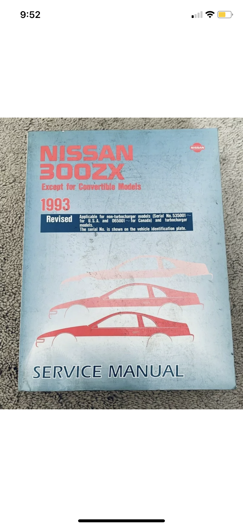1993 Nissan 300zx (aka Z32) factory service manual in very good condition. If you own one of these amazing vehicles, this is an invaluable resource. We used it for many years but no longer own the car.