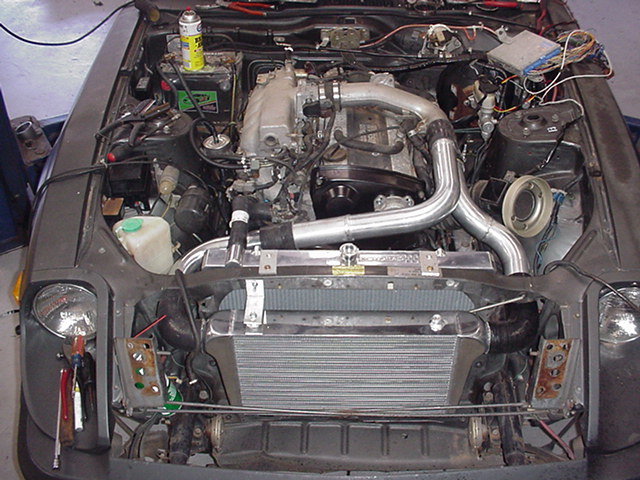 Well... things are really taking shape... the motor sounds great and the intercooler, piping and radiator have been installed without major problems.